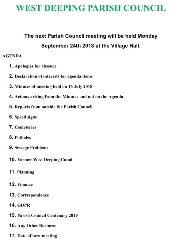 3 thoughts on “West Deeping Parish Council Agenda – 24th September 2018”