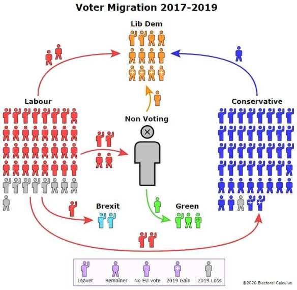 This graphic says a lot, but you have to know a bit to realise that losing 9 out of 41 voters, like Labour did, – or a 4.5% swing away – is towards an upper limit of what happens between General Elections.